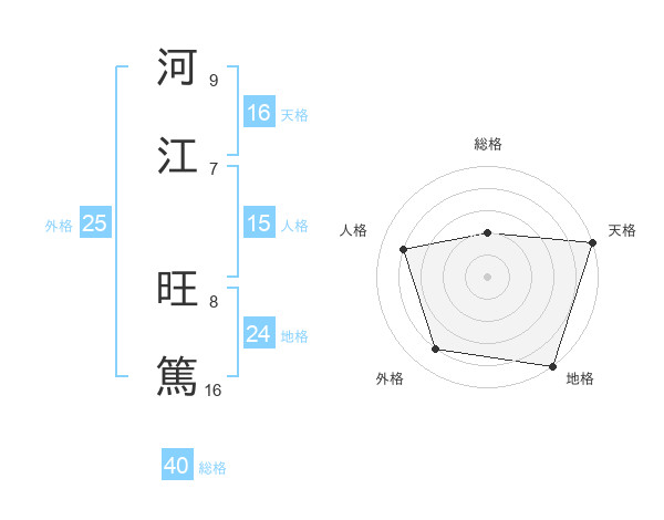 河江 旺篤さんの天格は16画の5点!
