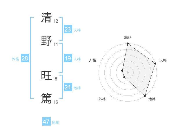 清野 旺篤さんの総格は47画の5点!