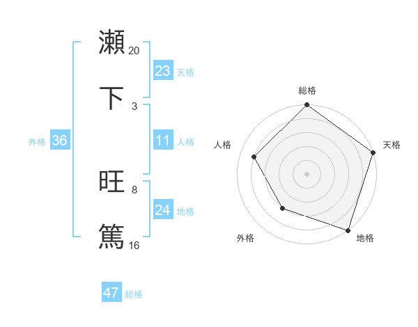 瀬下 旺篤さんを姓名の画数から五運を鑑定