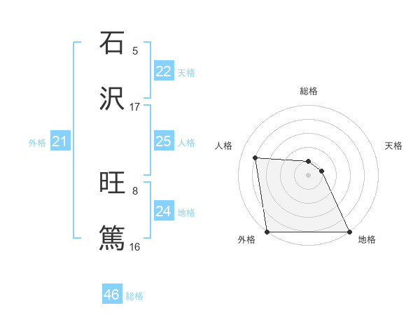 石沢 旺篤さんの外格は21画の5点!
