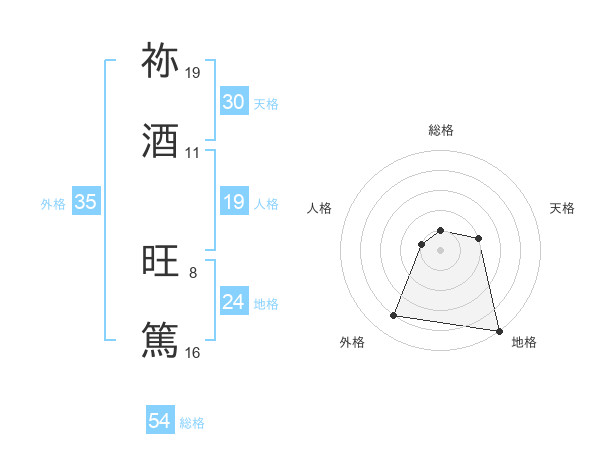 祢酒 旺篤さんの外格は35画の4点!