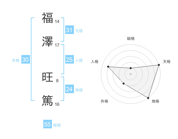 福澤 旺篤さんの天格は31画の5点!