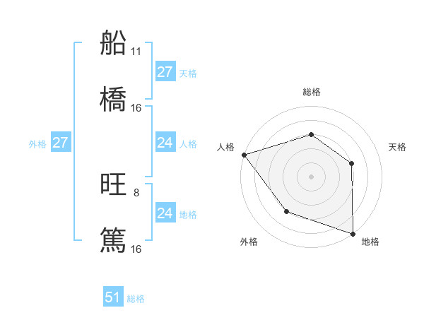 船橋 旺篤さんを姓名の画数から五運を鑑定