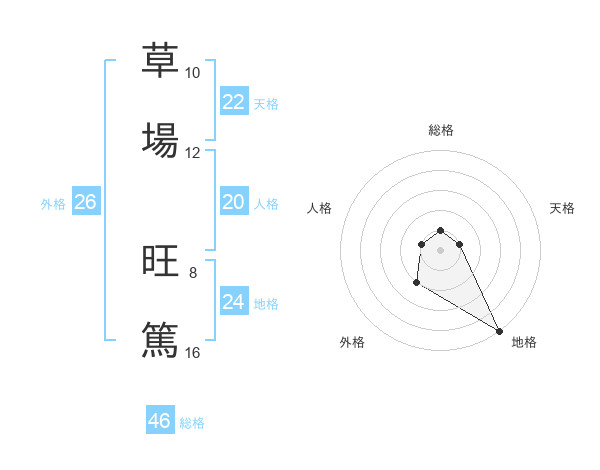 草場 旺篤さんを姓名の画数から五運を鑑定