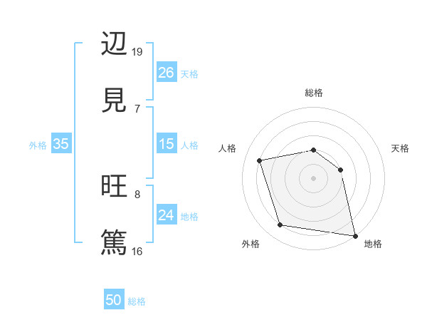 辺見 旺篤さんの外格は35画の4点!