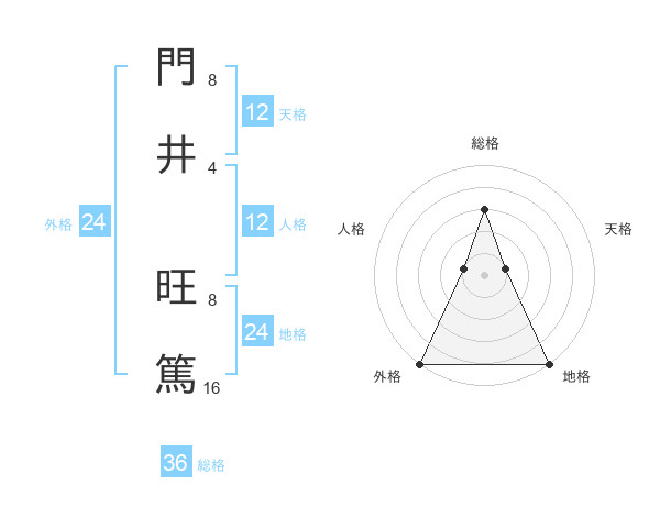 門井 旺篤さんを姓名の画数から五運を鑑定