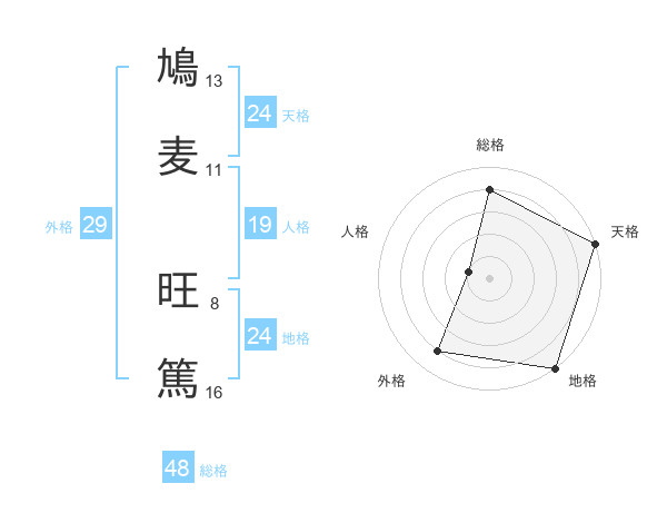 鳩麦 旺篤さんを姓名の画数から五運を鑑定