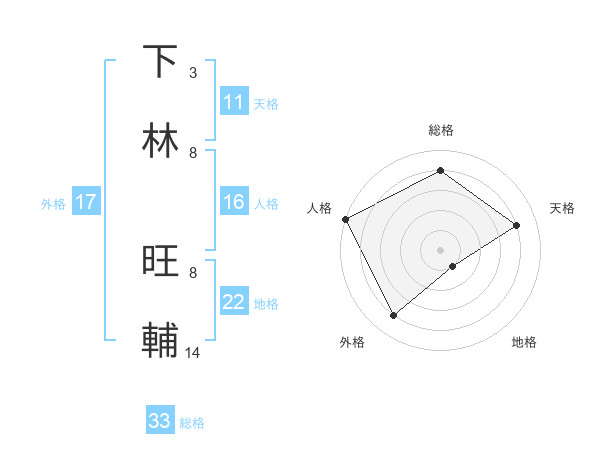 下林 旺輔さんの総格は33画の4点!