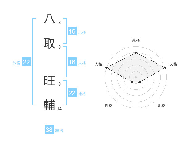八取 旺輔さんの地格は22画の1点!