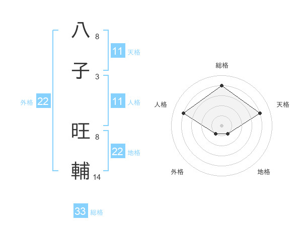 八子 旺輔さんの総格は33画の4点!