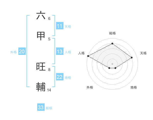 六甲 旺輔さんの総格は33画の4点!