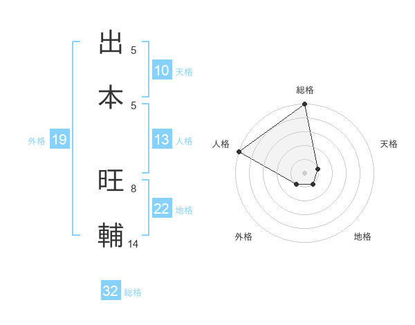出本 旺輔さんの総格は32画の5点!