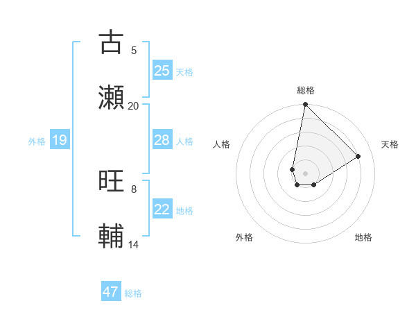 古瀬 旺輔さんの総格は47画の5点!