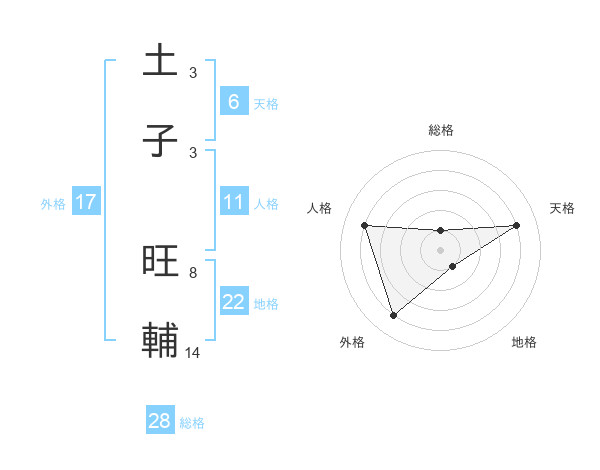 土子 旺輔さんの総格は28画の1点!