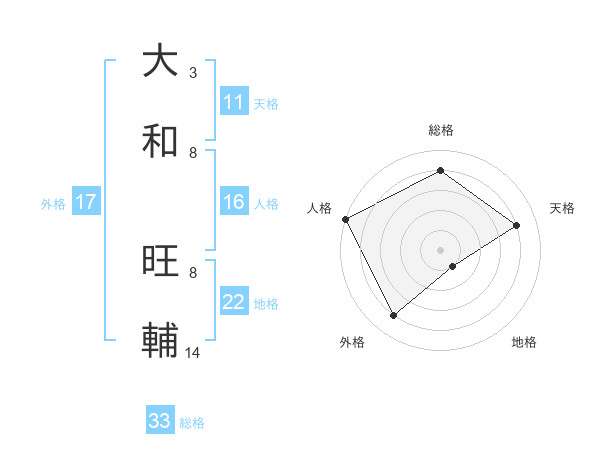 大和 旺輔さんの総格は33画の4点!