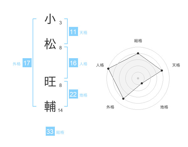 小松 旺輔さんの総格は33画の4点!