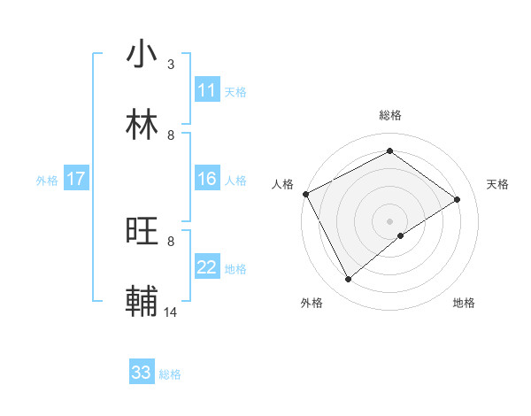 小林 旺輔さんの総格は33画の4点!