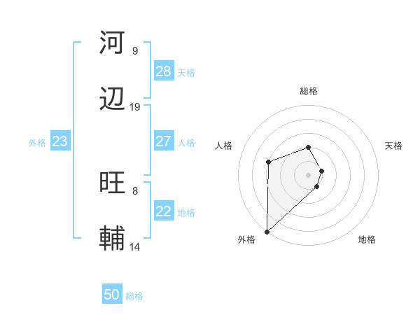 河辺 旺輔さんを姓名の画数から五運を鑑定