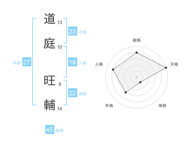 道庭 旺輔さんの総格は45画の4点!