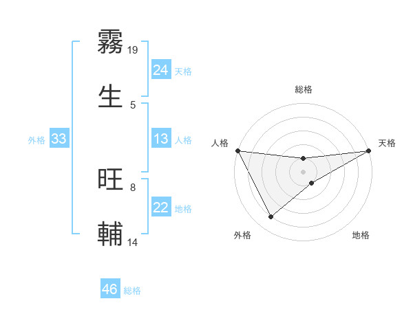 霧生 旺輔さんの天格は24画の5点!