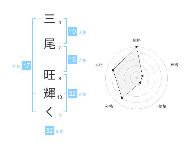三尾 旺輝くさんの総格は32画の5点!