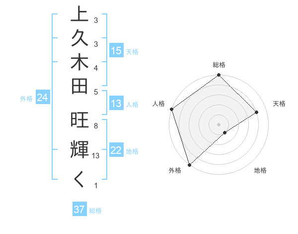 上久木田 旺輝くさんの総格は37画の5点!