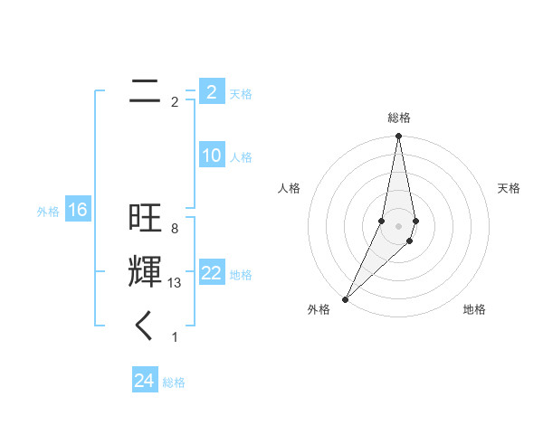 二 旺輝くさんの総格は24画の5点!