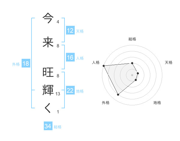 今来 旺輝くさんを姓名の画数から五運を鑑定
