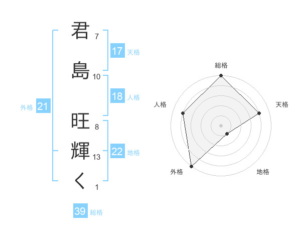 君島 旺輝くさんを姓名の画数から五運を鑑定