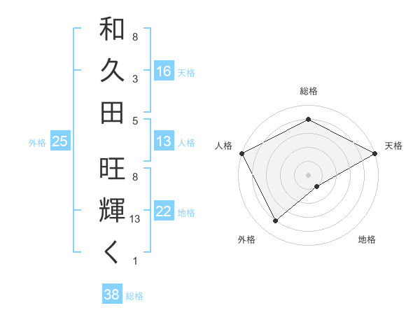 和久田 旺輝くさんを姓名の画数から五運を鑑定