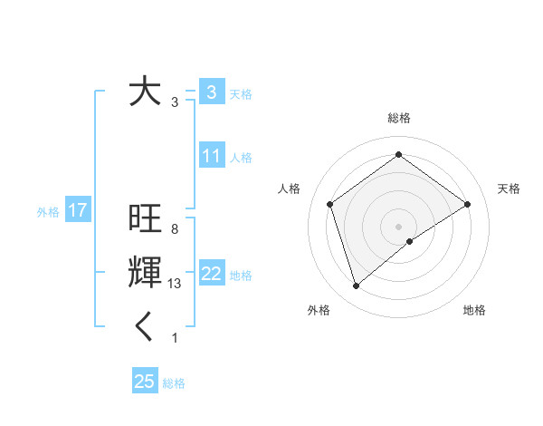 大 旺輝くさんの総格は25画の4点!