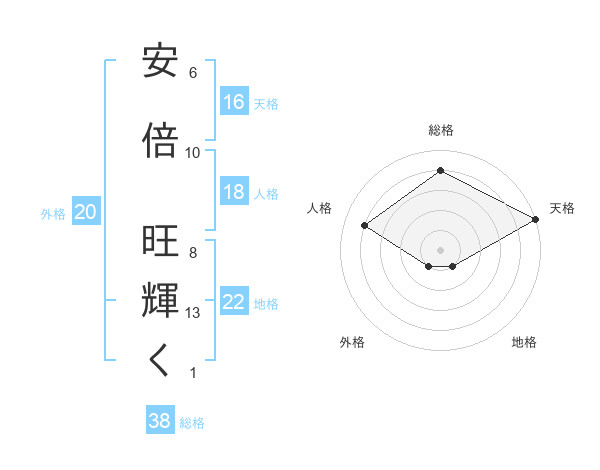 安倍 旺輝くさんを姓名の画数から五運を鑑定