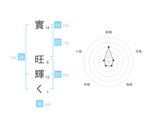 實 旺輝くさんの天格は14画の1点!