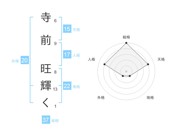 寺前 旺輝くさんの総格は37画の5点!