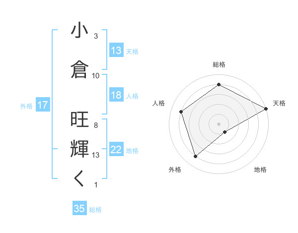 小倉 旺輝くさんを姓名の画数から五運を鑑定