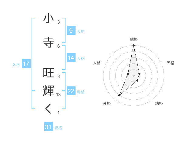 小寺 旺輝くさんを姓名の画数から五運を鑑定