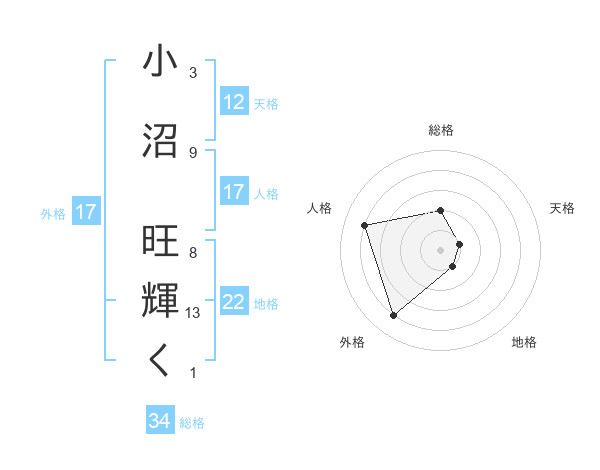 小沼 旺輝くさんを姓名の画数から五運を鑑定