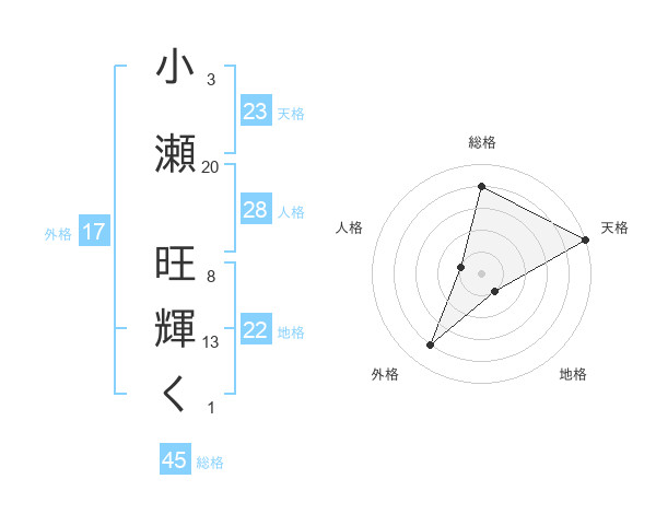小瀬 旺輝くさんを姓名の画数から五運を鑑定