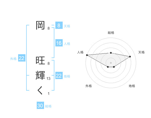 岡 旺輝くさんの地格は22画の1点!