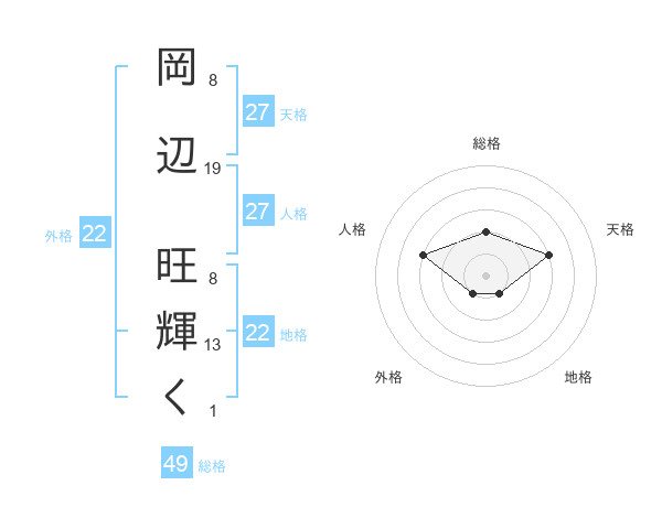 岡辺 旺輝くさんを姓名の画数から五運を鑑定