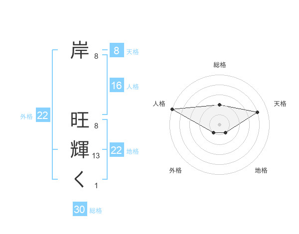 岸 旺輝くさんの外格は22画の1点!