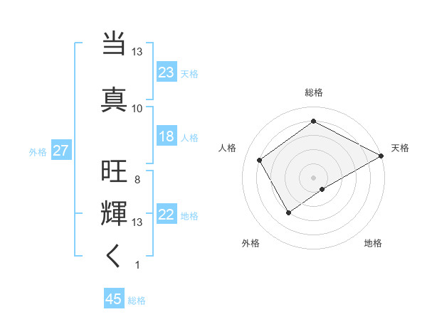 当真 旺輝くさんを姓名の画数から五運を鑑定