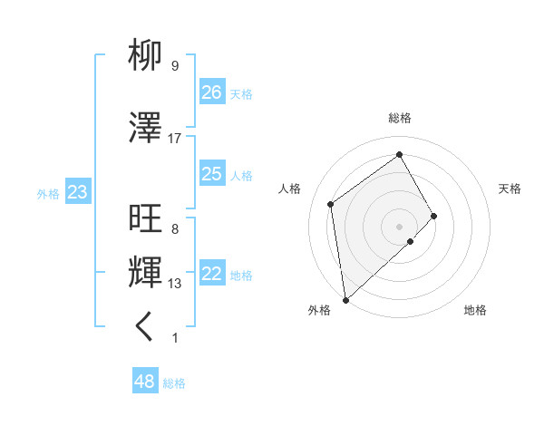 柳澤 旺輝くさんを姓名の画数から五運を鑑定