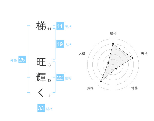 梯 旺輝くさんの総格は33画の4点!