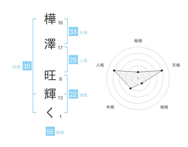 樺澤 旺輝くさんを姓名の画数から五運を鑑定