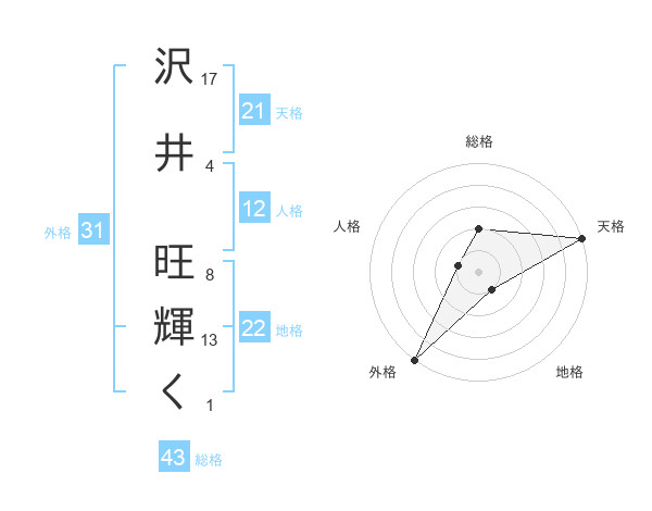 沢井 旺輝くさんを姓名の画数から五運を鑑定
