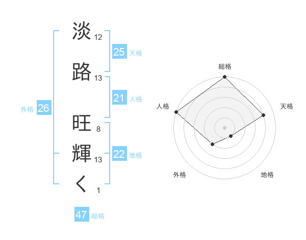 淡路 旺輝くさんを姓名の画数から五運を鑑定