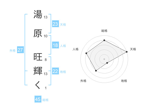 湯原 旺輝くさんの天格は23画の5点!