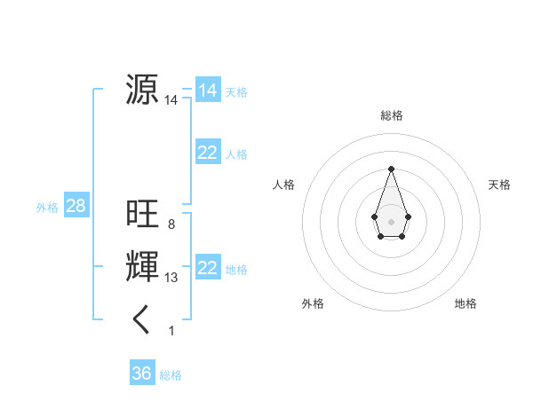 源 旺輝くさんの天格は14画の1点!