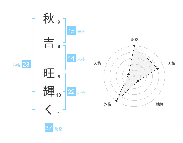 秋吉 旺輝くさんを姓名の画数から五運を鑑定